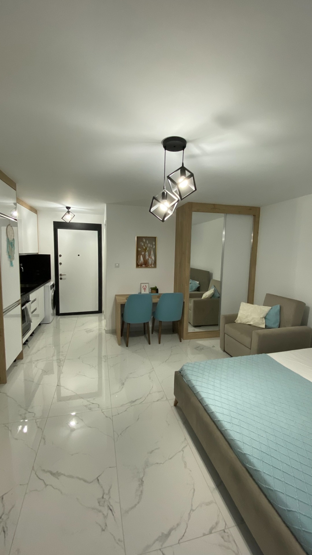 Nic tedy nebrání v přípravě snídaní, či složitějších pokrmů. Nákup potravin doporučujeme v 50metrů vzdáleném obchodě s potravinami a základními potřebami (včetně čerstvého pečiva, zeleniny-ovoce, drogerie, domácích potřeb, textilu) na hlavní třídě. Ceny jsou velmi přijatelné - podobné jako v ČR, platit lze měnou Turecká LIra nebo Euro. Otevřeno denně do 11ti večer.